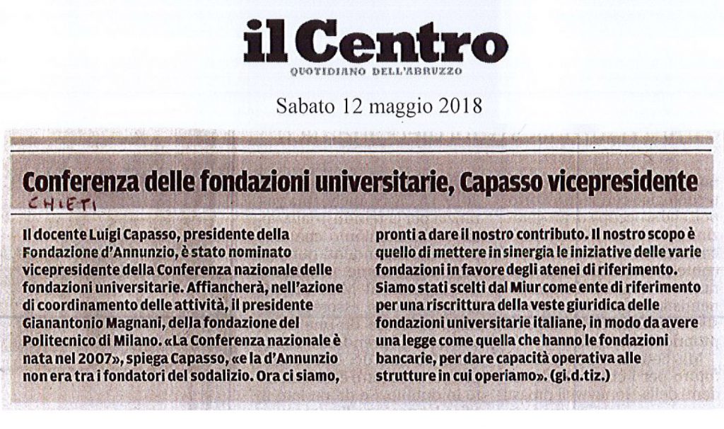 Conferenza delle Fondazioni Universitarie, Capasso vicepresidente
